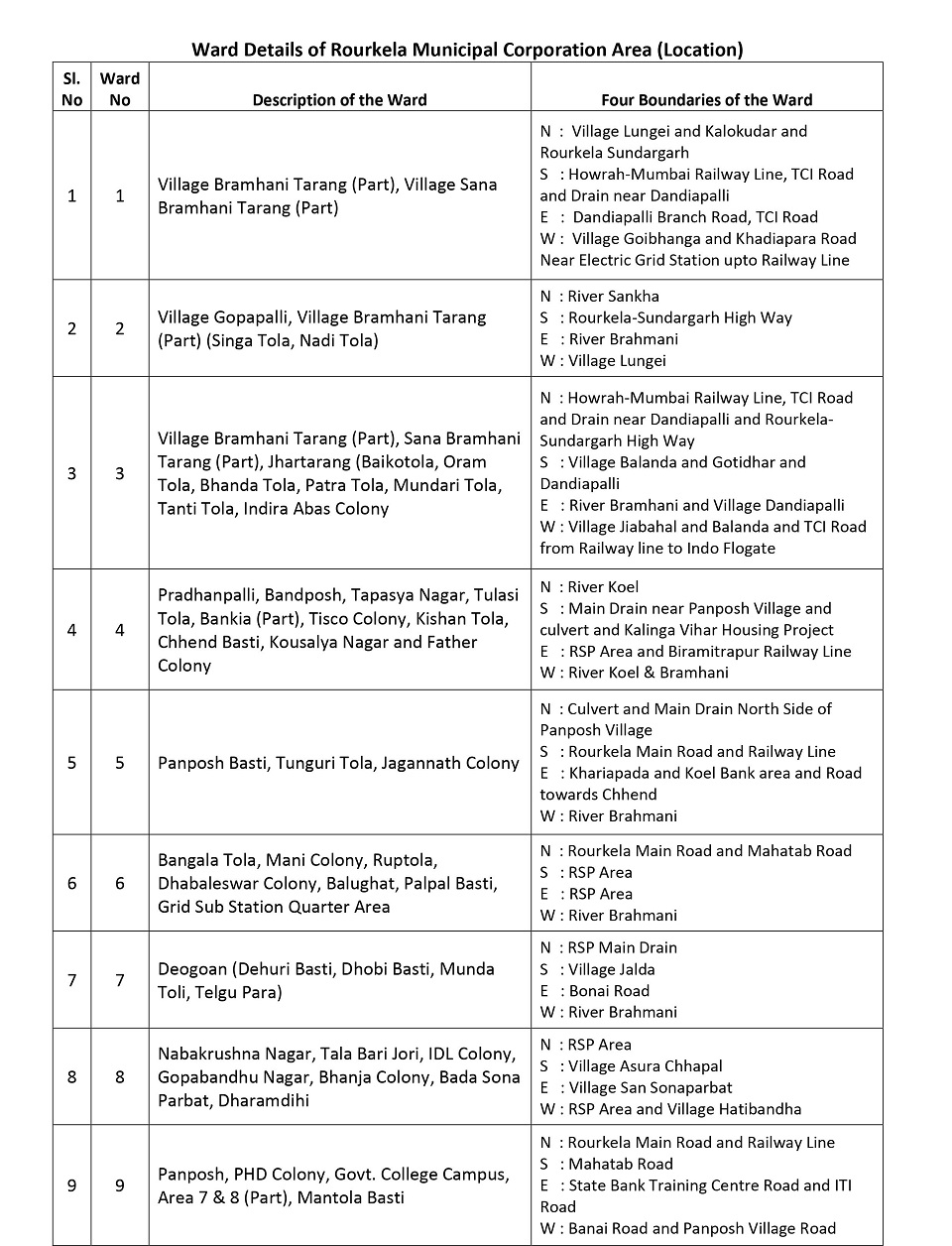 Rourkela Municipal Corporation Boundries