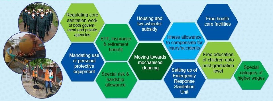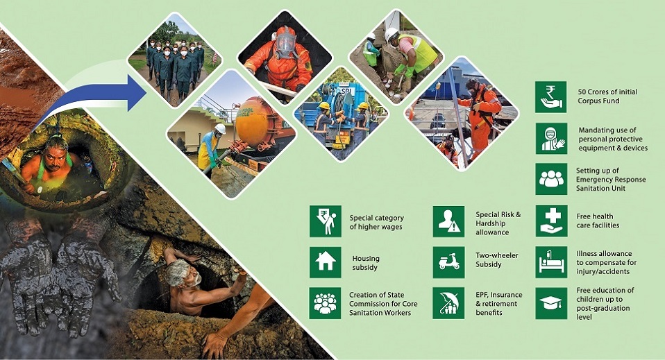 The Garima Scheme is introduced to ensure protection & welfare of Core Sanitation Workers dealing with faecal matter in toilets, Septic Tank, sewer and treatment facilities.